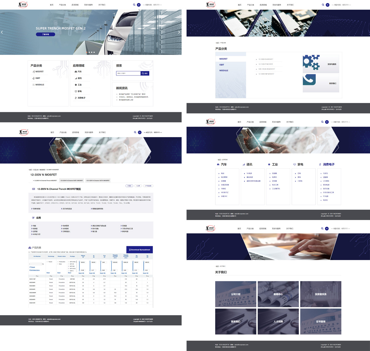 無錫新潔能股份有限公司(以下簡稱“公司”)成立于2013年1月,注冊資本為14,168萬元,擁有新潔能香港、電基集成、金蘭功率半導(dǎo)體三家全資子公司以及深圳分公司、寧波分公司。目前公司員工總共300余人,其中研發(fā)人員80余人。公司成立以來即專注于MOSFET、IGBT等半導(dǎo)體芯片和功率器件的研發(fā)、設(shè)計(jì)及銷售,產(chǎn)品優(yōu)質(zhì)且系列齊全,廣泛應(yīng)用于消費(fèi)電子、汽車電子、工業(yè)電子、新能源汽車及充電樁、智能裝備制造、軌道交通、光伏新能源、5G等領(lǐng)域;未來隨著云計(jì)算、大數(shù)據(jù)、智能電網(wǎng)、無人駕駛等領(lǐng)域的蓬勃發(fā)展,公司產(chǎn)品將在該等新興領(lǐng)域發(fā)揮重要作用。2021年,無錫獵豹協(xié)助新潔能完成了網(wǎng)站改版工作,在功能和細(xì)節(jié)上按照客戶需求做了更細(xì)致的打磨,作為外界了解企業(yè)的窗口,網(wǎng)站的作用不容忽視。