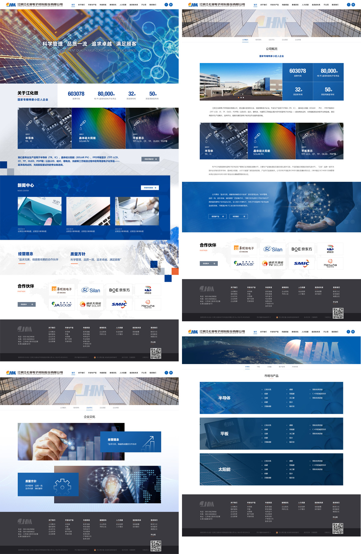 江陰江化微電子材料股份有限公司成立于2001年,江蘇省高新技術(shù)企業(yè),中國(guó)電子化工新材料產(chǎn)業(yè)聯(lián)盟副理事長(zhǎng)單位,2016年中國(guó)半導(dǎo)體材料十強(qiáng)企業(yè),2019年中國(guó)電子化工材料專業(yè)十強(qiáng),2021年獲國(guó)家級(jí)專精特新小巨人企業(yè)稱號(hào),2017年4月在上交所主板掛牌上市,股票代碼:江化微603078。由于疫情反復(fù),網(wǎng)站建設(shè)工作經(jīng)歷了一個(gè)漫長(zhǎng)的過(guò)程后終于圓滿完成,并通過(guò)客戶領(lǐng)導(dǎo)審核上線。無(wú)錫獵豹在為客戶提供服務(wù)的過(guò)程中不斷成長(zhǎng),急客戶之所急,想客戶之所想,在自己專業(yè)領(lǐng)域?yàn)榭蛻籼峁┡c之匹配的解決辦法,為客戶降本增效。